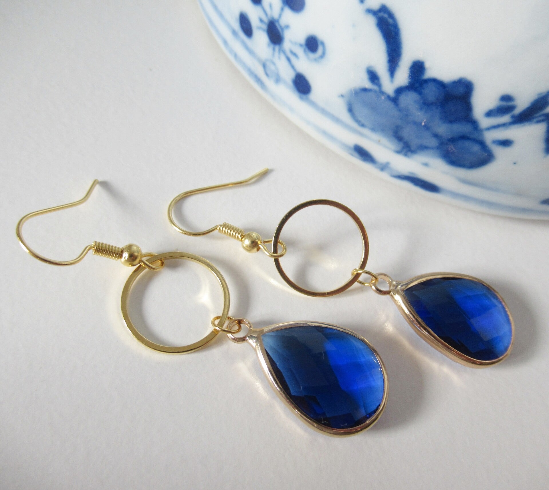 Leuk als cadeautje of gewoon voor jezelf, deze blauwe druppel oorbellen in goudkleurige setting.