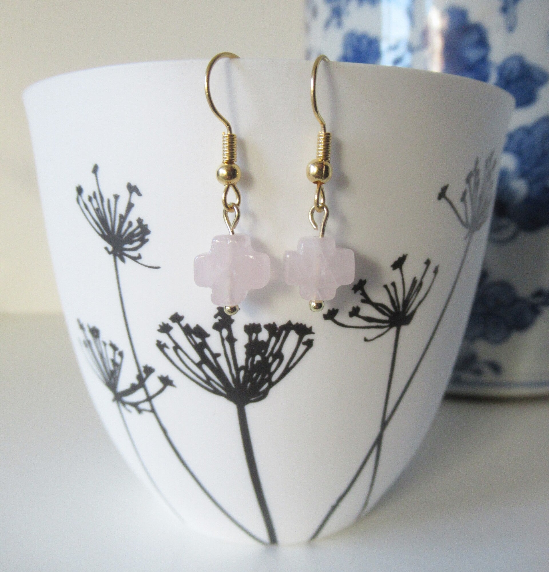 Goudkleurige oorbellen met Rozenkwarts edelsteen.SpecificatieKleur: GoudMateriaal: Messing gold platedFormaat: 3 cmHandmadeNikkelvrij